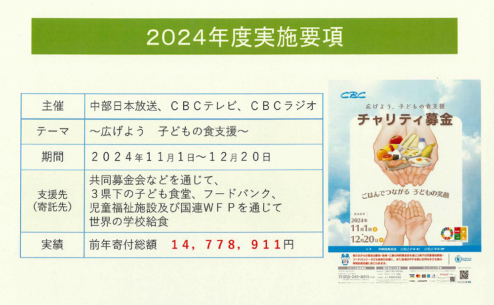 「子どもの食支援」をメインテーマで実施されているCBCチャリティ募金。