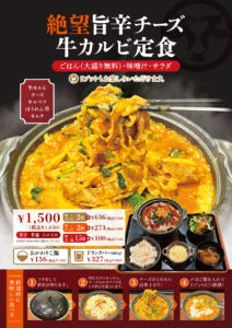 この「旨辛チーズ 牛カルビ定食」は、